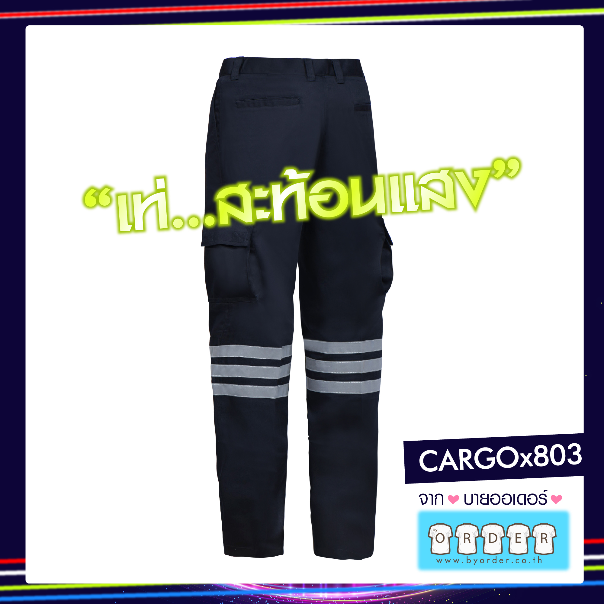 กางเกงคาร์โก้ ติดเทป 3แถบ (X803) กรมท่าเข้ม