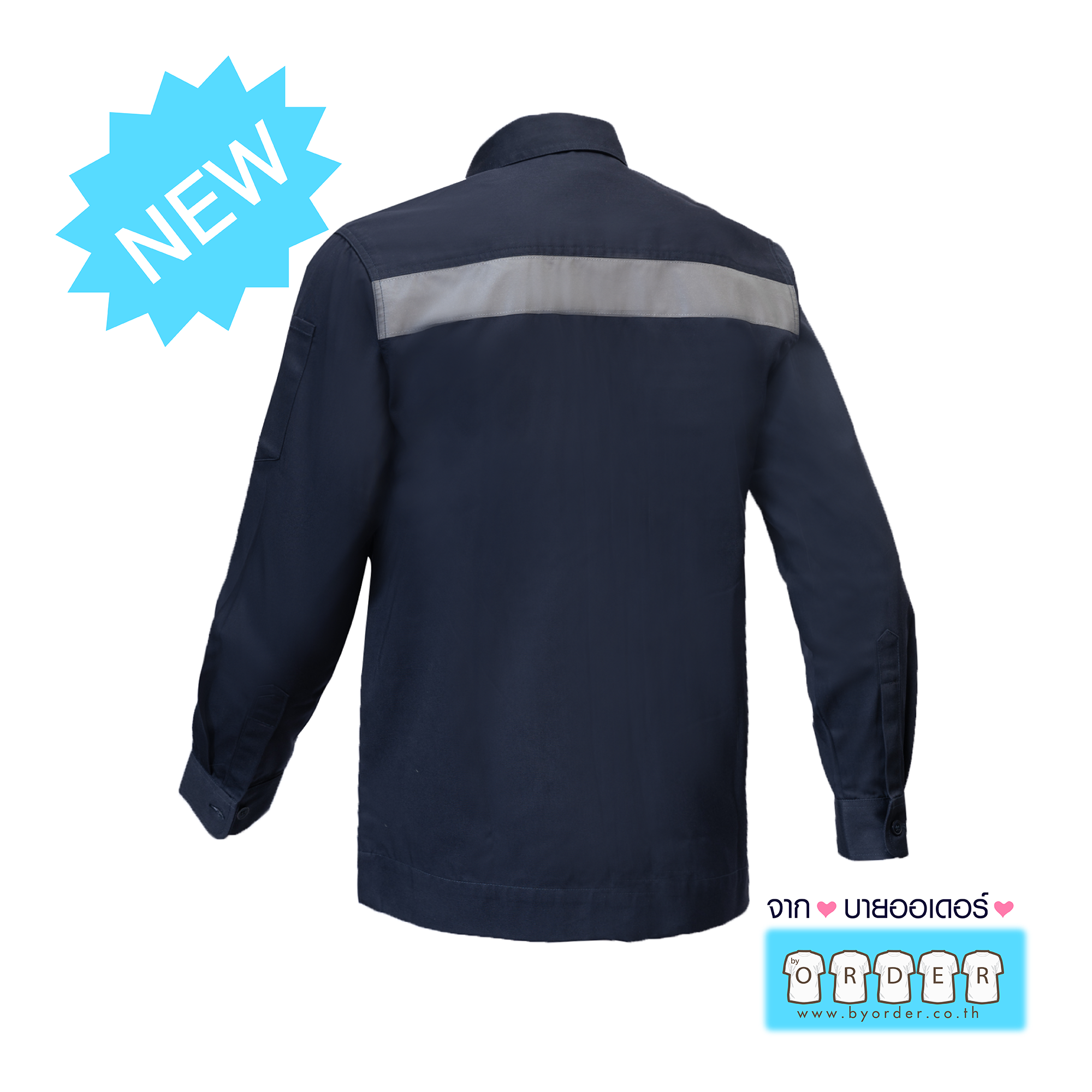 เสื้อช่างแขนยาวสีกรมท่า เท่...สุขุม ตกแต่ง ติดเทปสะท้อนแสง 2 นิ้ว 1 ตำแหน่งด้านหลัง กระเป๋า 4 ใบ